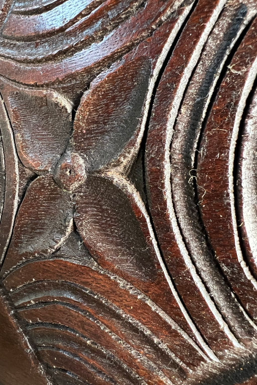 Original hinges and lock with later timbers added to strengthen the lid and base.